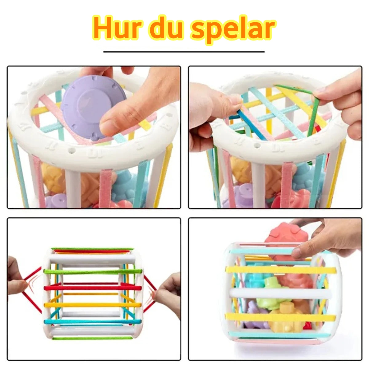 En färgglad och pedagogisk leksak som lockar till lek och utveckling! Den här leksaken låter ditt barn träna finmotorik, hand-ögonkoordination och nyfikenhet samtidigt som det lär sig känna igen olika former och färger. De färgglada klossarna gör leken både utvecklande och rolig. Perfekt för små upptäckare!
